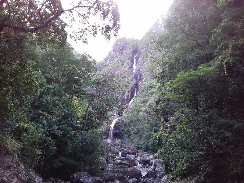 This trek is a mighty mish that I probably would have come back from with a broken bone or two if my son wasn’t with us. There is a smaller, really full waterfall (8 or 9 metres drop maybe) into a lovely pool not far before the actual glenni falls 300 m big one in the photo that is absolutely splendid to swim in. I did this mish of a trip 3 years ago when I was 53. My son had to assist us down some of the rather sandy small house sized boulders onto narrow ledges, so its not for the faint hearted. There is also a quite treacherous bit of ledge crawling that you cannot stand on because the overhang above is too low – just before the previously mentioned waterfall. We didn’t make the journey over that smaller waterfall ledge to the base of the 300 m one as the water was gushing to fast and hard the day we went, but you are so close to the big one at that point that you get a pretty awesome close up of it. I wouldn’t do this again now – just 2 yrs extra of body strength and agility loss. 🙁