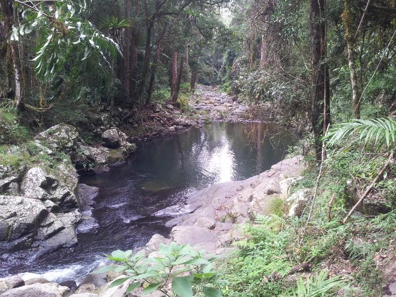 Gwongoorool Pool is located in the Lamington National Park Binna Burra section. It is a 2.1km hike (one way) through rainforest down into a valley. At the end of the hike you will come across a beautiful large swimming hole on the Coomera River with the clearest water you will ever see. If you walk upstream from the pool you will find another swimming hole with a log to jump off (at the time of writing).