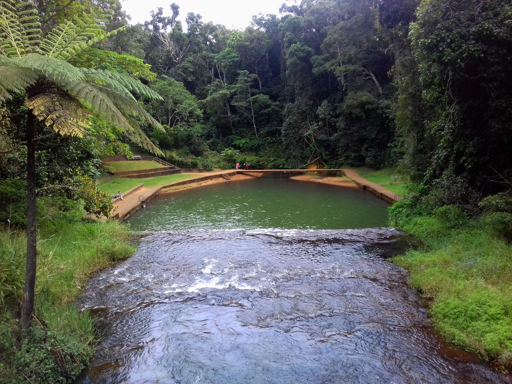 Malanda Falls has a large man made swimming hole at the base of the falls. This is a popular swimming location and a lovely place to stop for a swim and a picnic on a hot and humid day. There is a visitor centre, a short rain forest walk and various other facilities available at this swimming location. The swimming hole has a shallow sandy area for splashing around and a deeper area for swimming. You can also relax on the grassy banks with some shade available.
