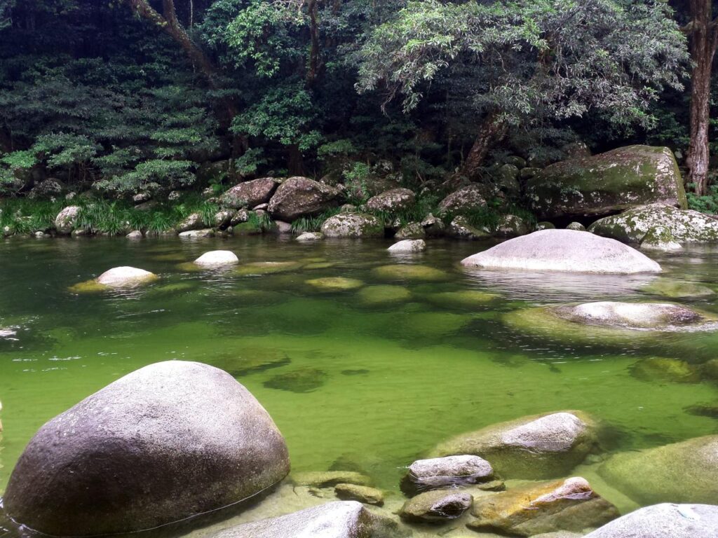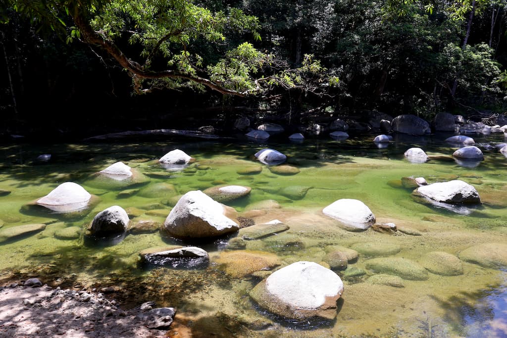 Mossman Gorge is a magical place to swim. The swimming hole is surrounded by rain forest. The crystal clear river passes between large round boulders. This is a very popular swimming hole on a hot day. There are no facilities directly by the swimming hole, however there toilets and picnic benches 250 metres away next to the bus stop. Make sure to check the river conditions and do not swim after heavy rain as the river can become quite dangerous.