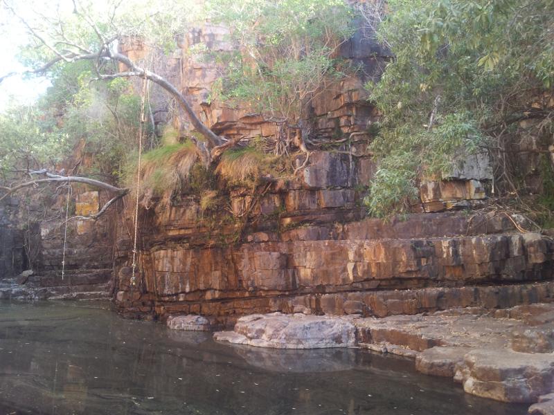 The Grotto is a seasonally flowing waterfall in a rocky gorge near the town of Wyndham. There is a permanent waterhole at the bottom of the falls and you can swim in this all year round. To get to The Grotto you have to walk down a series of steps from the car park along a narrow rocky path. The swimming hole is very deep and the water is ice cold.